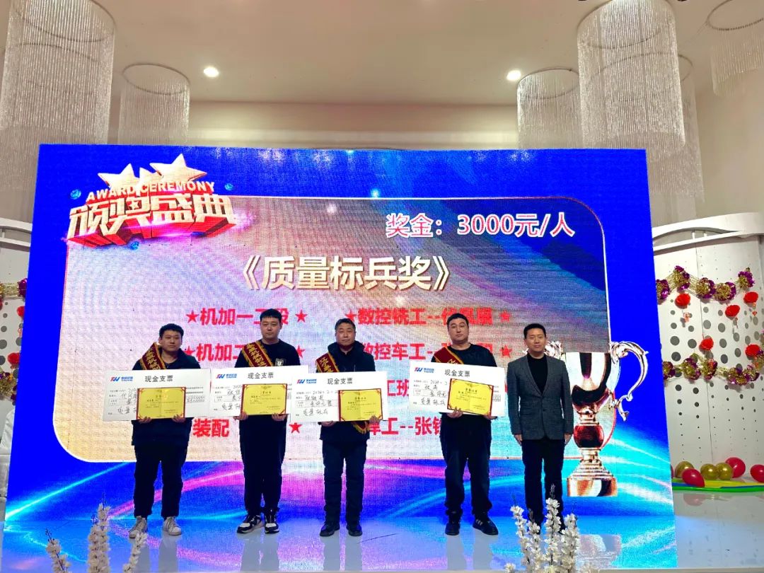 聚焦榮耀加冕,見證榜樣力量。晚會開始前,公司對2023-2024年度進步青年、優(yōu)秀員工、質(zhì)量標兵以及首屆功勛員工進行表彰,感謝他們?yōu)閷崿F(xiàn)公司高質(zhì)量發(fā)展做出的積極貢獻。一本本榮譽證書不僅是對他們工作的肯定,更是對泰威人實干精神的傳承和弘揚。通過樹立先進典型,發(fā)揚榜樣精神,進一步增強了全體泰威人的凝聚力和競爭力。頒獎結束后,公司總經(jīng)理徐剛先生發(fā)表新年致辭,展望2024年公司發(fā)展前景。
