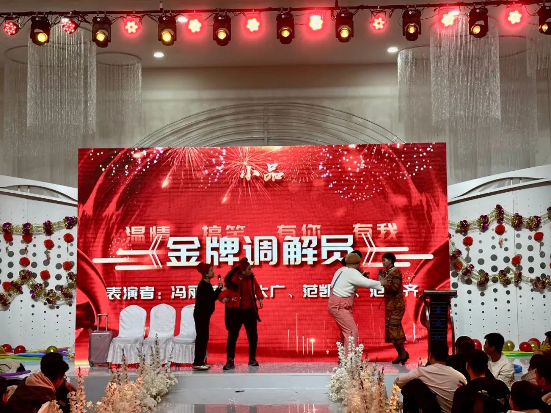 薈萃星光,觥籌熠熠,隨著頒獎典禮的結束,晚會在瀟灑的開場舞《驍》中正式拉開帷幕,隨后,公司各部門工作人員為大家?guī)砹宋乃囇莩觯枨莩侗啃『ⅰ?、《海芋戀》、《著魔》,黑管獨奏《上海灘》,舞蹈表演《科目三》、《桃花朵朵開》,小品節(jié)目《四大才子招親》、《金牌調(diào)解員》,大合唱《壯志在我胸》,一段段精彩紛呈的節(jié)目收獲了臺下觀眾源源不斷的掌聲與歡呼聲,展現(xiàn)了泰威人蓬勃向上的青春風采。其中,小品《金牌調(diào)解員》的演員們,憑借著精湛、搞笑的演技,得到了全場觀眾們的認可,小品被評為全場最佳節(jié)目。